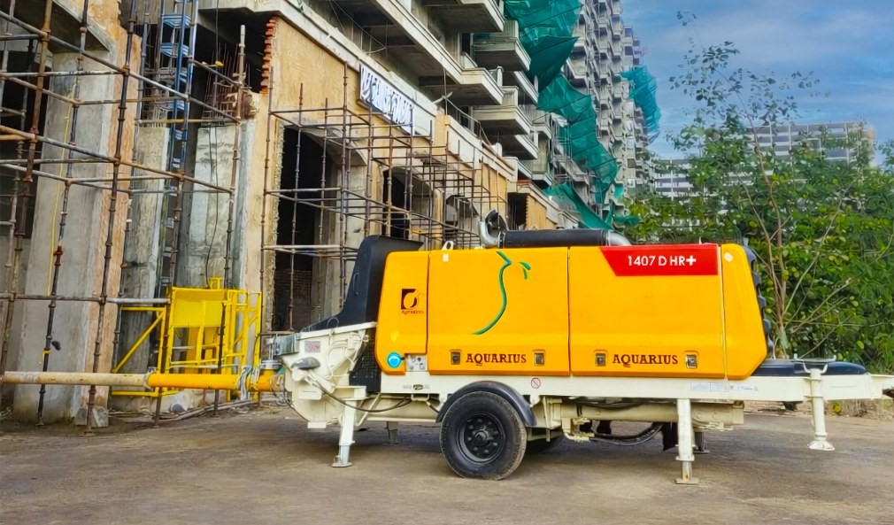 16 Mar Aquarius 1407 D HR+ Stationary Concrete Pump working at Sandhu Construction Equipment & Services Greater Noida, Uttar Pradesh